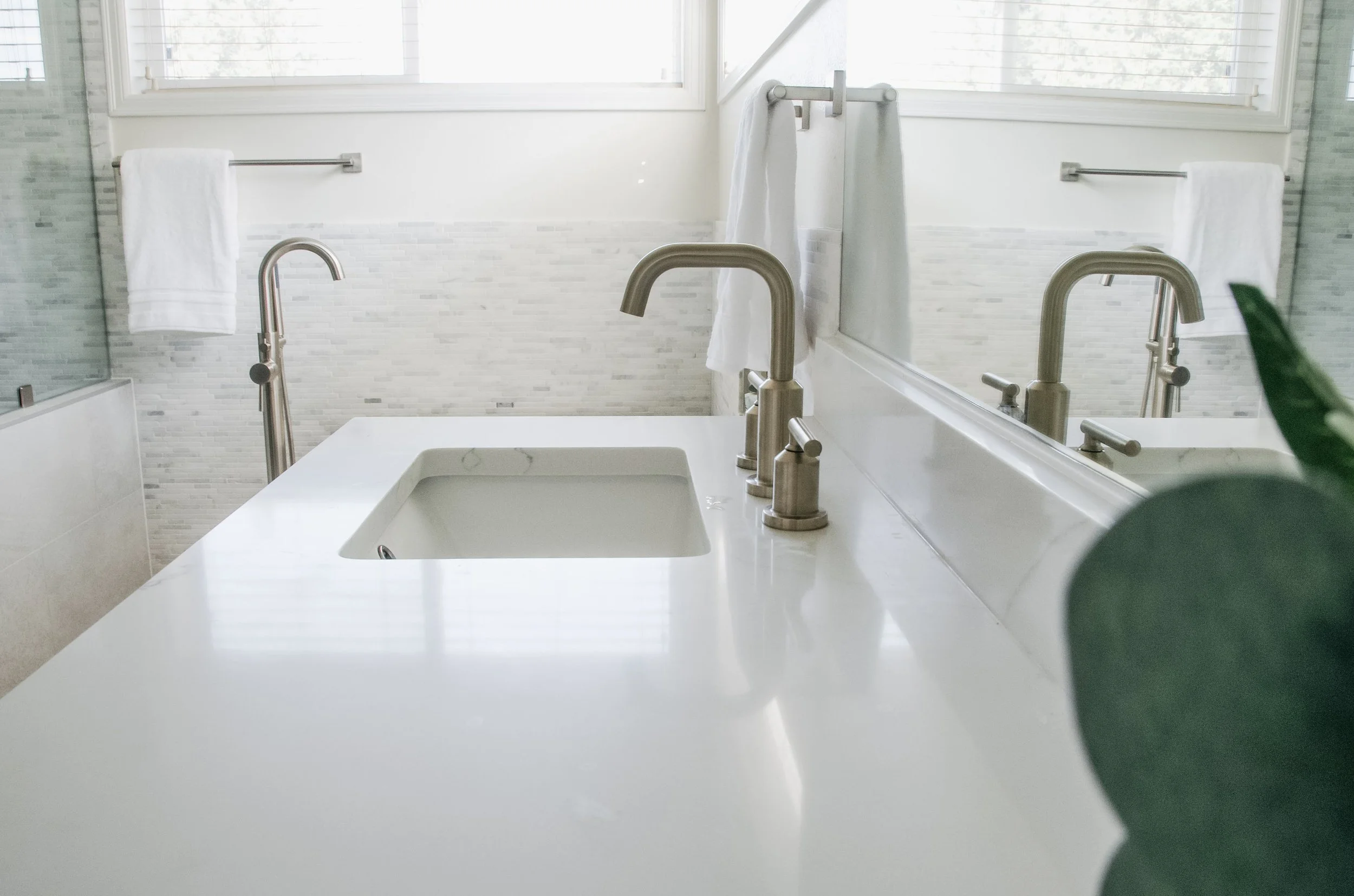 Having small kids at home and both parents working full time it was important for this homeowner to have a beautiful space in their home where they can relax and find serenity. We chose a natural stone to cover all walls, paired with a deeper shade floor to keep the focus on all that stone.